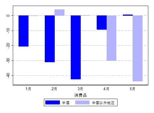 圖2 2020年1月-5月美國消費品進口同比增速