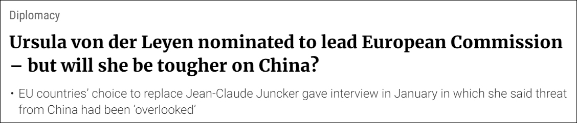 馮德萊恩被提名為歐盟委員會主席——她會對華更加強硬嗎? 《南華早報》馮德萊恩被提名為歐盟委員會主席——她會對華更加強硬嗎? 《南華早報》